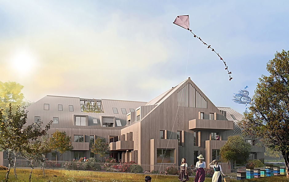 Die Lage urban, der Charme ländlich, das Konzept hochmodern – die Idee des generationenübergreifenden und gemeinschaftlichen Lebens auf dem Bauernhof ist Vorbild für ein Wohnkonzept, das eine nachhaltige Bauweise mit einem exklusiven Designanspruch verbindet. Die neue Wohn-und Gartenarchitektur setzt auf Stilelemente historischer Münchner Bauernhäuser– wie des benachbarten Gutes Riem – und verbindet sich harmonisch mit dem alten Ortskern von Alt-Riem sowie mit der Liebe zur Natur und zum Leben auf kleinem CO2-Fuß. Bienenfreundliche Spalierobstbäume, Hochbeete und Bauerngärten mit alten Kräutersorten und der sensible Einsatz von Holz und Materialität bilden architektonisch anspruchsvolle Welten mit feinster Ausstattung, geschmückt von zwei besonderen Kunstwerken.