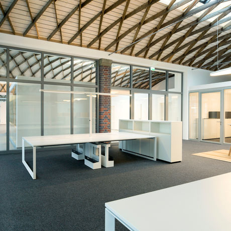 Im Zuge der Sanierung des historischen Schlachthofareals im Regensburger Osten galt es, eine Teilfläche der Westhalle für die Nutzung als Büro der Kanzlei Rödl - internationale Beratungs- und Wirtschaftsprüfungsgesellschaft - auszugestalten.